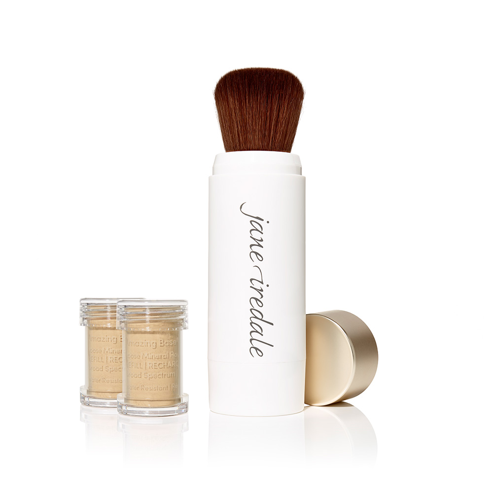 Mineraal los poeder foundation met SPF 15/20 breedspectrum zonbescherming in een navulbaar zelfdoserend veganistische kwast! Lichte tot volledige dekking! Bij de Amazing Base Refillable Brush heb je de kwast en foundation in 1, wat wil je nog meer? Ideaal om mee te nemen en makkelijk in gebruik. Je ontvangt 1 ampul voor erin en 1 refill! De Amazing Base foundation is geschikt voor een normale, vochtarme, doffe , gevoelige en/of reactive huid! Na aanschaf van de Amazing Base brush en de foundation is op dan shop je de refill verpakkingen!